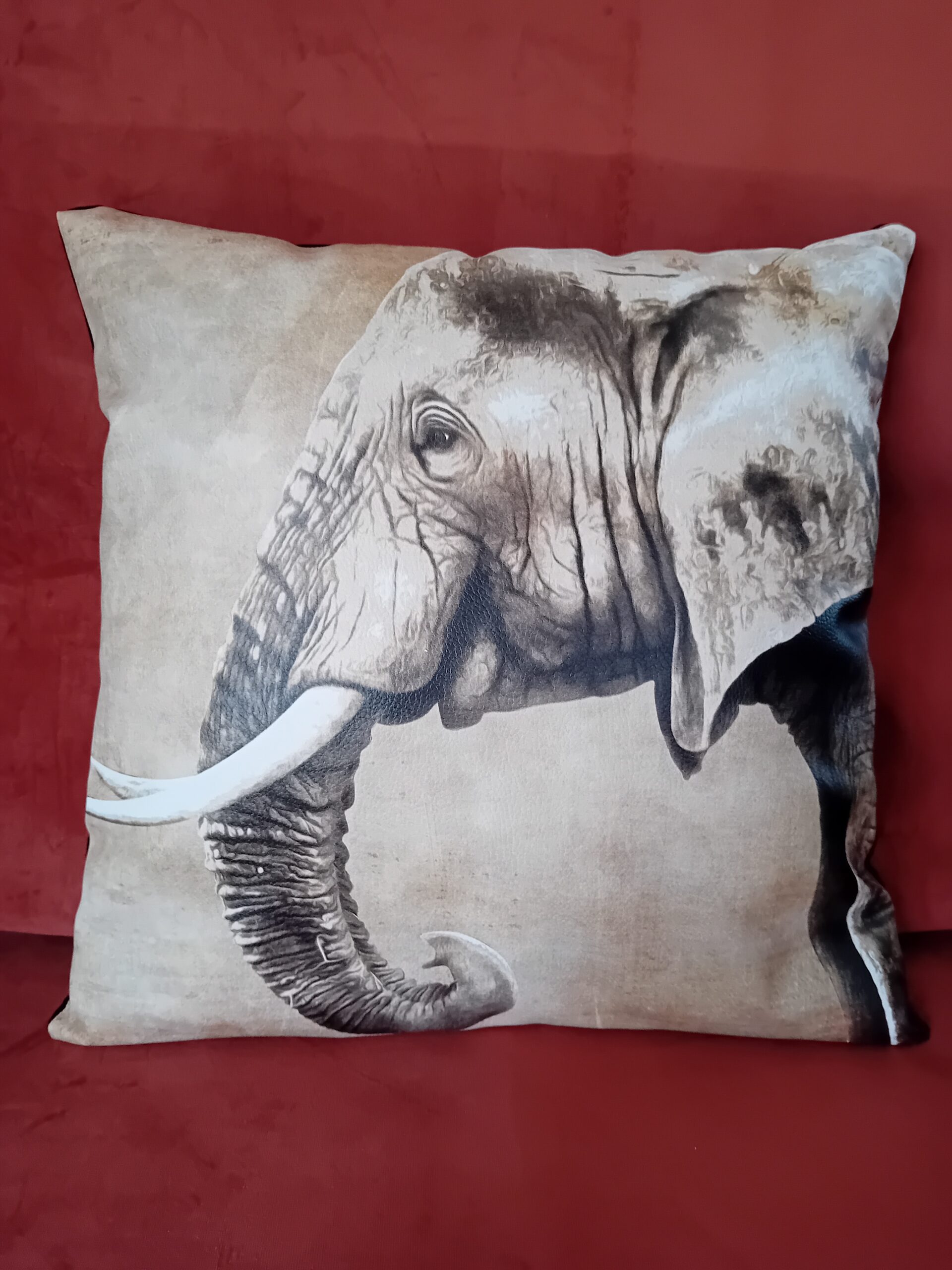 coussin éléphant en simili cuir et dos velours noir 40*40